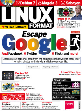 Create your own cloud, migrate to your own email system, maybe even build your own social network: a lot of us have been thinking about doing it for a while, but we've lacked the incentive to make the effort for relatively little gain. Well, we now have all the incentive we need, as it becomes clearer every day that our 'private' information is a commodity for sale like everything else. Follow our guide to online freedom and you'll never be sold to advertisers (or the NSA, or GCHQ) ever again. On a lighter note, we hear from Raspberry Pi founder Eben Upton about his plans for the future, learn about the sterling work of electronic freedom fighters the EFF and take a peek into the murky world of KDE development. There's also brain fodder in the shape of Lisp, MariaDB , Ruby On Rails, Cuda, Raspberry Pi and LibreOffice tutorials, along with the healthy dose of insight, love and passion that characterises Linux Format.